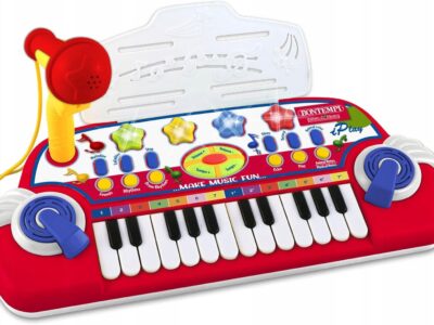 Keyboard | Zabawka muzyczna | Pianino Elektroniczne | Mikrofon | Pulpit Produkt powystawowy – nieużywany, Produkt sprawdzony – sprawny, kompletny, Brak oryginalnego opakowania – opakowanie zastępcze. Opis producenta Elektroniczna klawiatura z 24 przyciskami • mikrofon • 8 dźwięków • 8 rytmów z perkusją • 8 rytmów z aranżacją • 8 melodii • 30 kołysanek •…