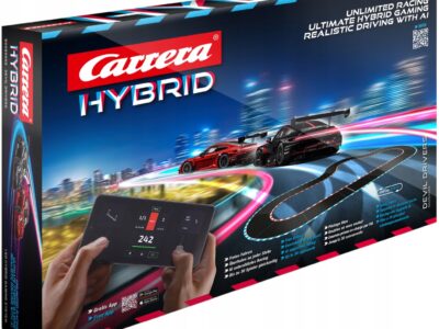 Zestaw | Tor wyścigowy | Hybrydowy | 2 auta | Porsche 911 GT3 R | Devil Drivers | Carrera | 1:50 Produkt powystawowy – sprawdzony, kompletny, stan bardzo dobry, Stan produktu – bardzo dobry, posiada widoczne, nieznaczne ślady użytkowania, Opakowanie oryginalne producenta – kompletne – posiada nieznaczne uszkodzenia, stan bardzo dobry, Opakowanie otwarte celem sprawdzenia…