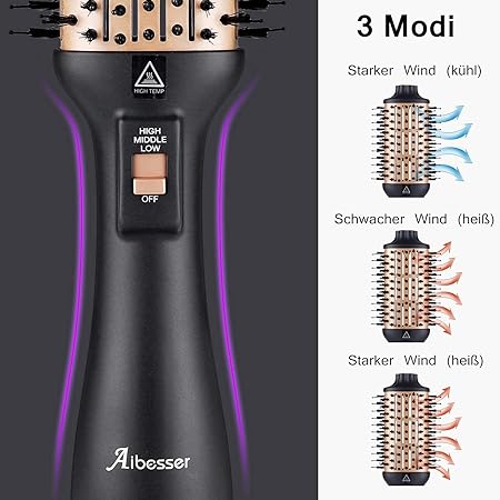 - Przyjazna w podróży i doskonały prezent – ta jonowa szczotka do włosów jest kompaktowa, lekka i bardzo przyjazna dla użytkownika. Idealna do użytku domowego, w podróży, na urlopie, a nawet do biura, szczotka Aibesser na gorące powietrze nadaje się bardzo dobrze jako prezent dla rodziny i przyjaciół.