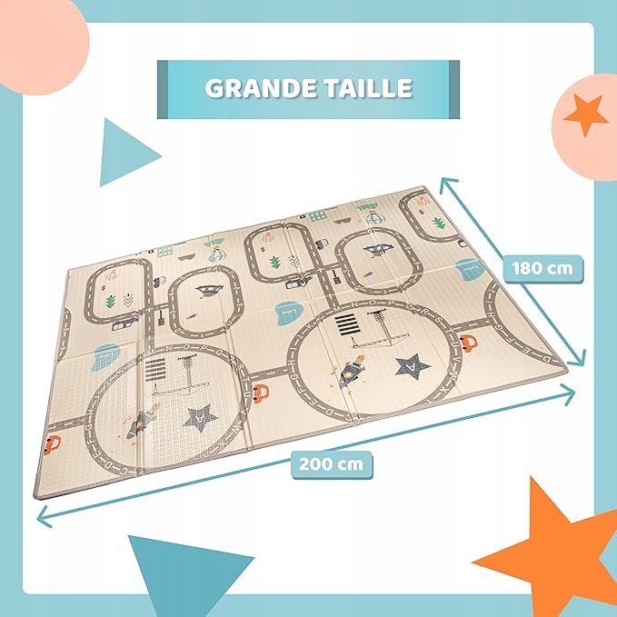 MATA PIANKOWA 200×180 SKŁADANA DLA DZIECI DWUSTRONNA DO RACZKOWANIA ZABAWY