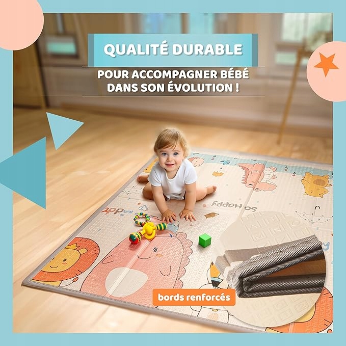 - Wszechstronna i atrakcyjna: mata motoryczna dla niemowląt Yuzy to coś więcej niż tylko akcesorium do zabawy, łączy w sobie czarujący design i praktyczną funkcjonalność. Dzięki dwustronnym wzorom ta mata do zabawy dla niemowląt pobudza intelektualne rozbudzenie Twojego dziecka. Składana i lekka konstrukcja ułatwia przechowywanie nawet w małych przestrzeniach. Jako prawdziwa mata motoryczna dla niemowląt wspomaga rozwój dziecka i harmonijnie wpasowuje się w Twój dom.