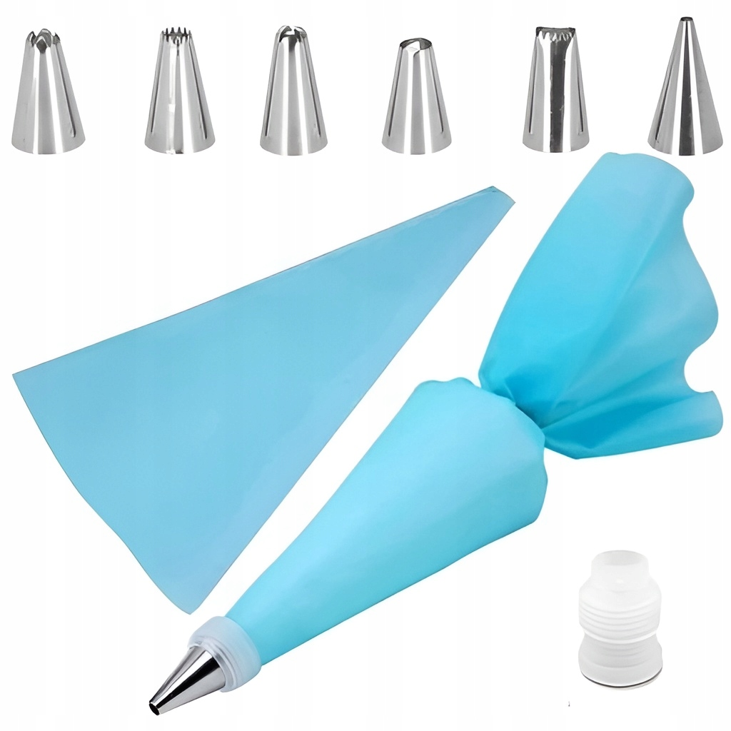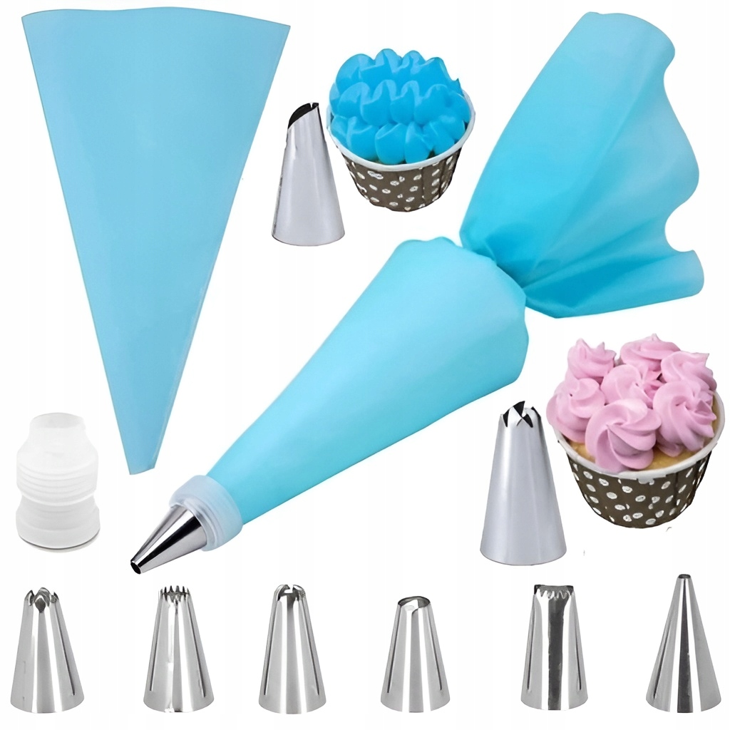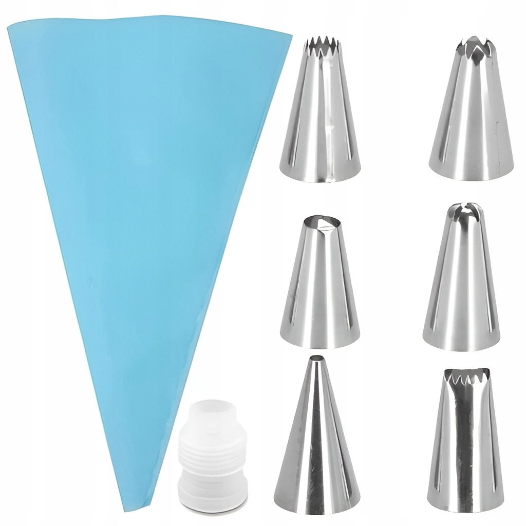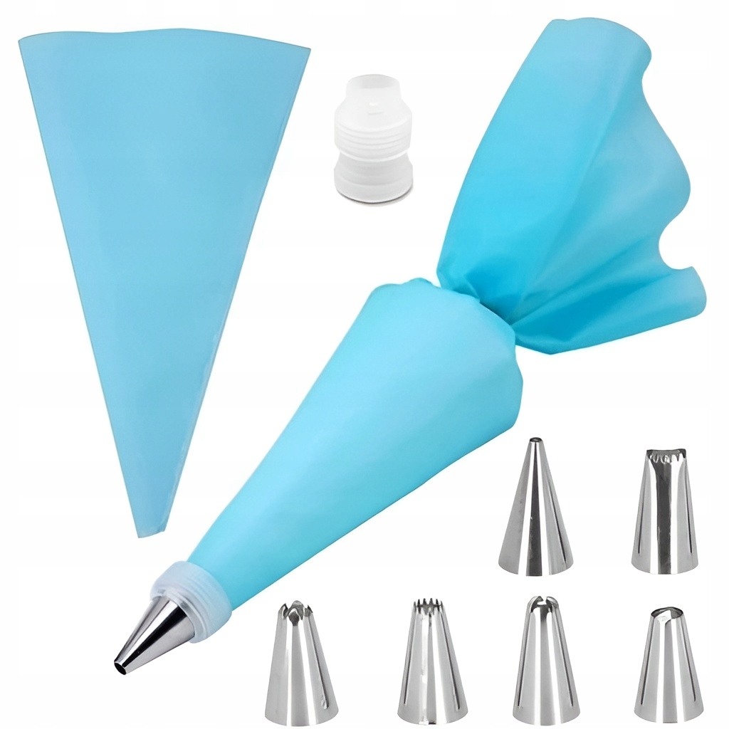 Dekorator do tortów i ciast! Doskonały zestaw składający się z podwójnej przejściówki oraz aż 8 różnorodnych, stalowych końcówek.