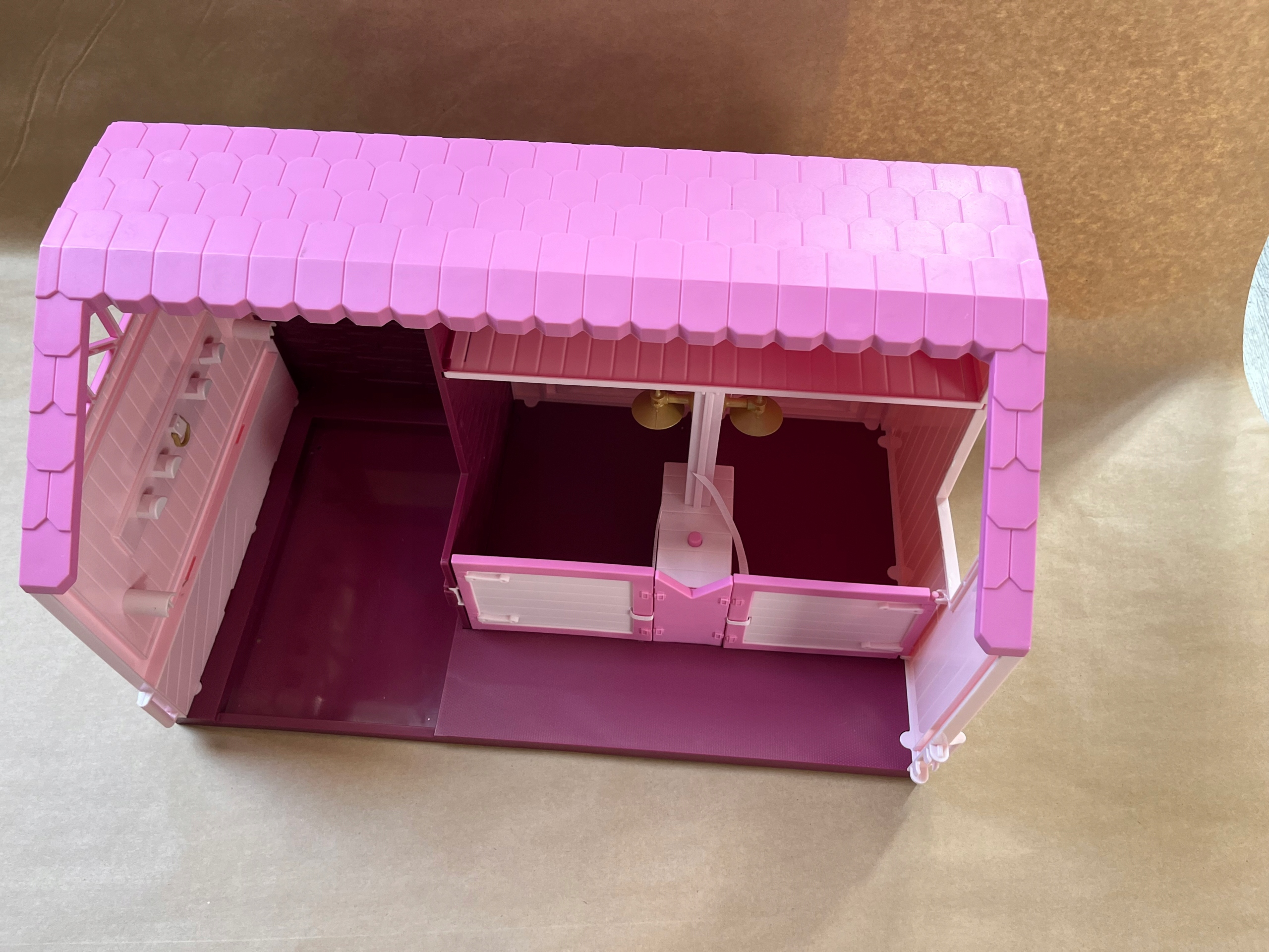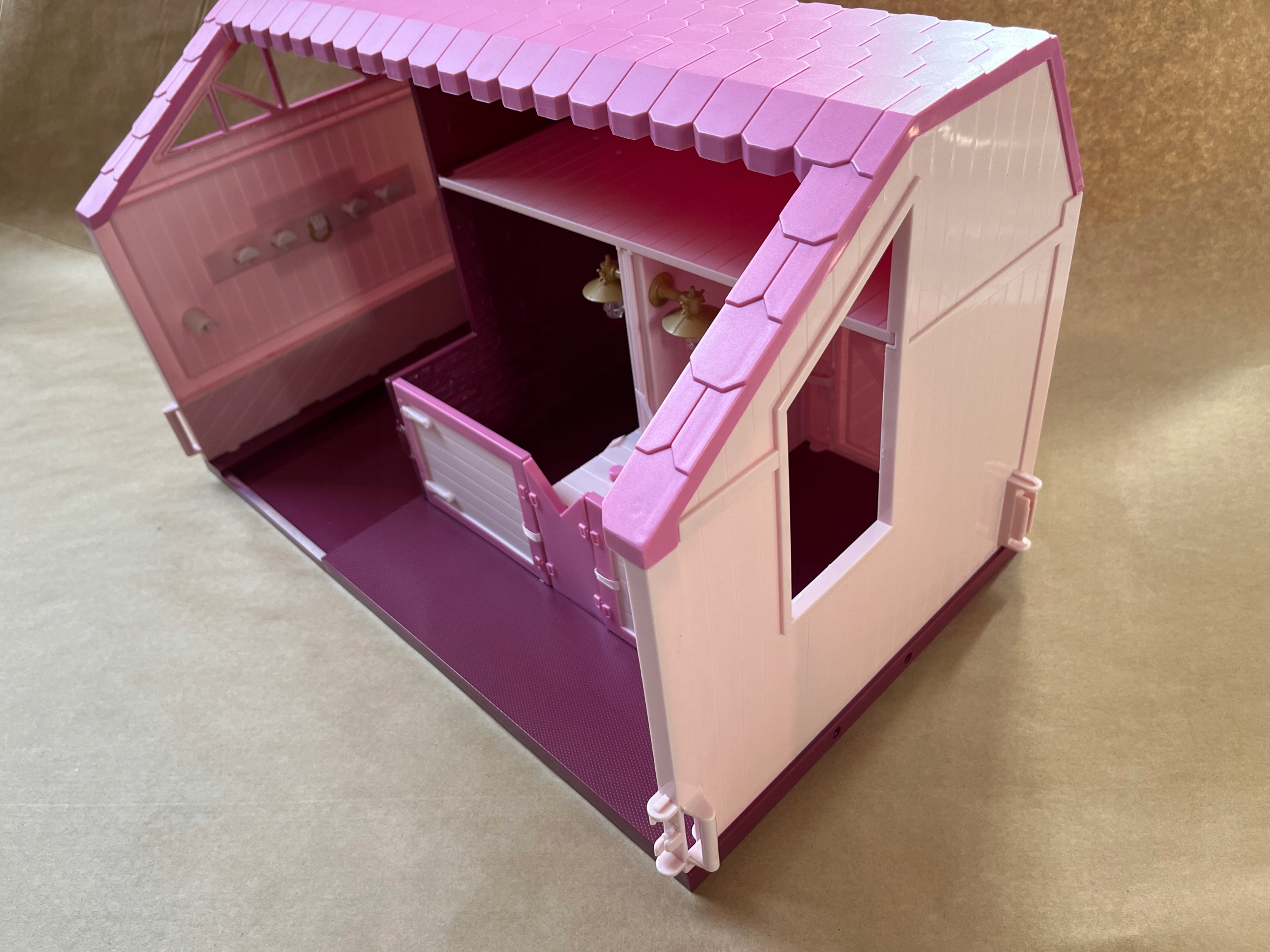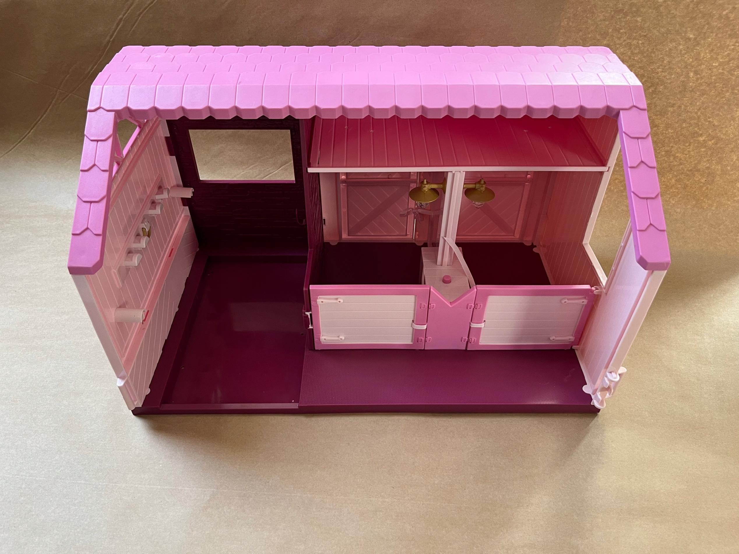 - Bez montażu: Rozpakuj i baw się! Ta stajnia dla koni jest wstępnie zmontowana i jest kompatybilna z większością miniaturowych lalek i koni.