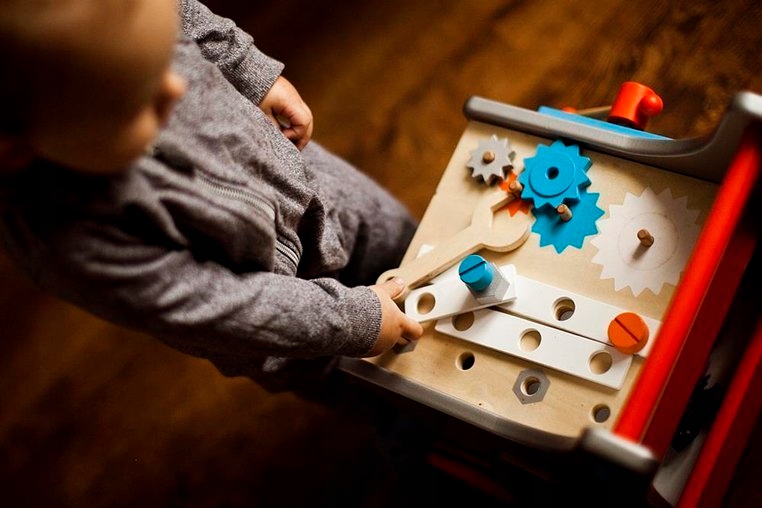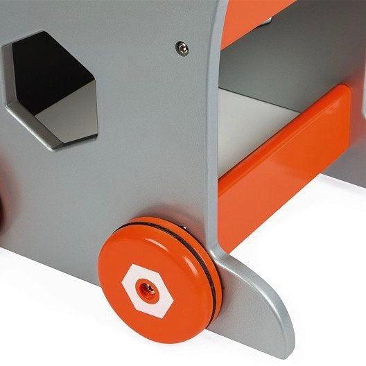 Mały Majsterkowicz, spieszy na ratunek! Drewniany warsztat na kółkach pozwoli mu naprawić wszystko, nieomalże wszędzie.