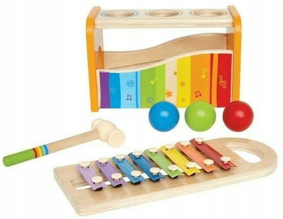 Kolorowy zestaw muzyczny to edukacyjna zabawka, która nauczy maluszka wytwarzania i rozpoznawania podstawowych dźwięków. Dzięki starannemu wykonaniu, wysokiej jakości materiałom i dobrze wyprofilowanym, zaokrąglonym krawędziom produktu, zabawa zestawem muzycznym jest niezwykle bezpieczna dla zdrowia i życia dziecka. Zestaw muzyczny marki Hape to synonim klasyki, tradycji i ekologii. To produkt, który posłuży Twojemu maluszkowi na długie lata. To zabawka, która łączy pokolenia.
