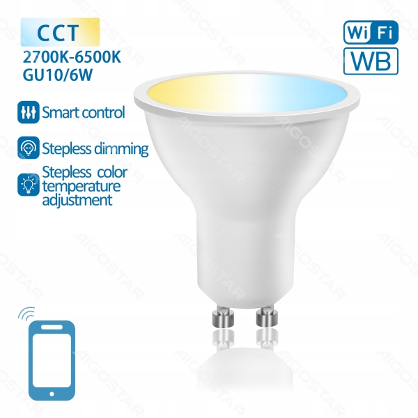 Żarówka LED CCT GU10 WIFI+BLUETOOTH 2700-6500K 6W